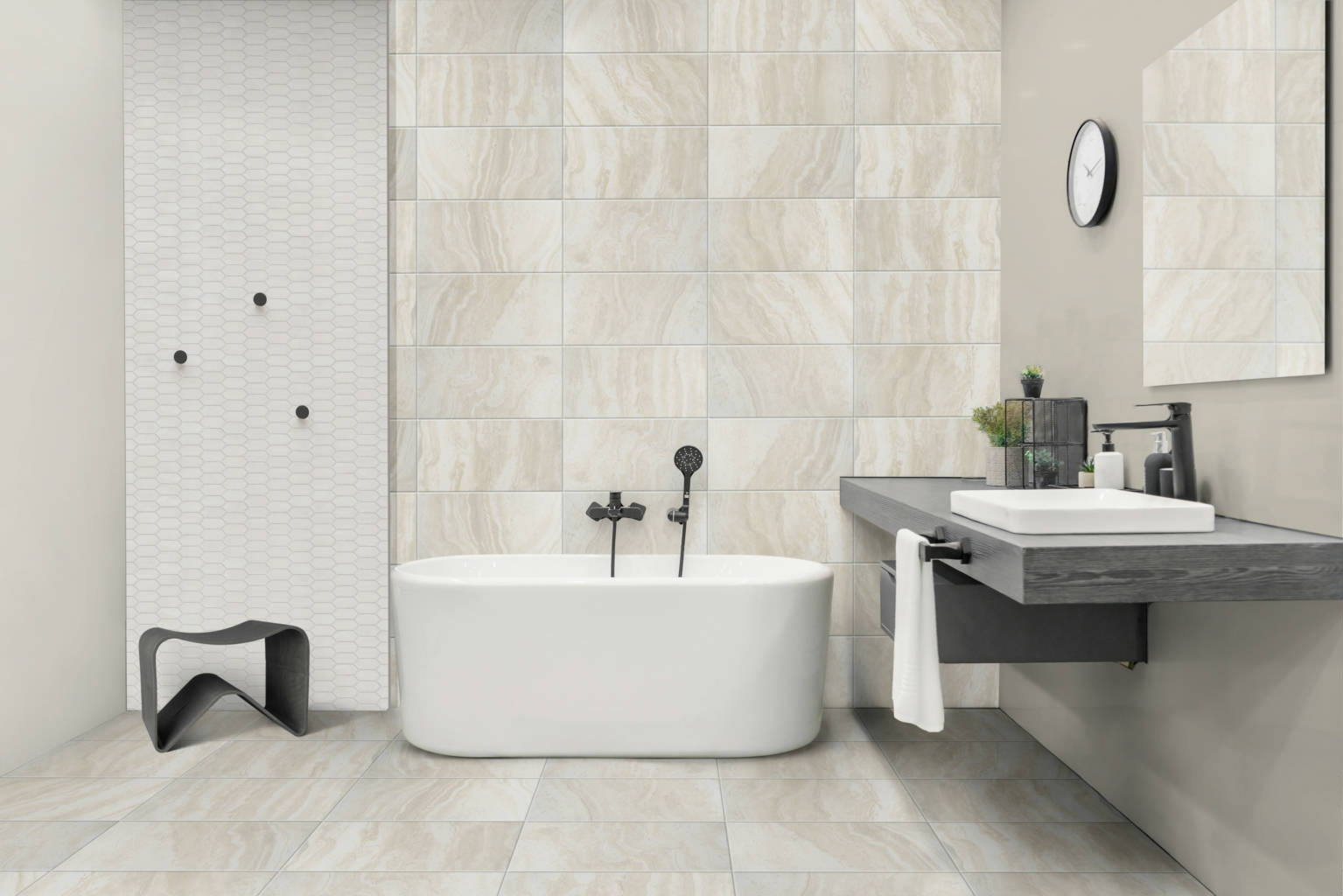 Roccia di Roma is a glazed color body porcelain pressed tile made in the USA. It receives its design inspiration from the classic Roman Travertine marble. It is a cross-cut design pattern, which lends itself to both classic and contemporary